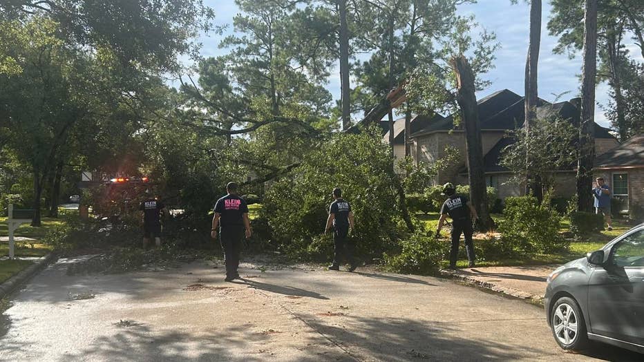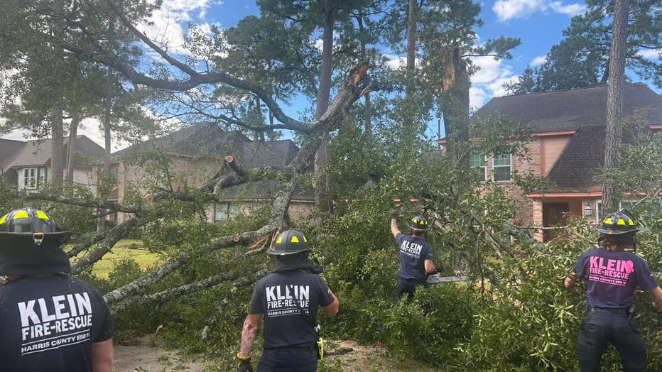 The Klein Hearth Division mentioned crews have been out clearing storm particles after winds and rain moved out of the realm Saturday morning.