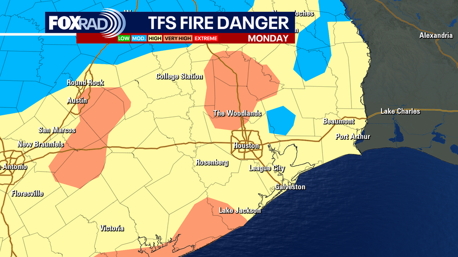 In a single day lows will dip into the low 40s with mid-upper 30s north of Houston each Monday morning and Tuesday morning.Â