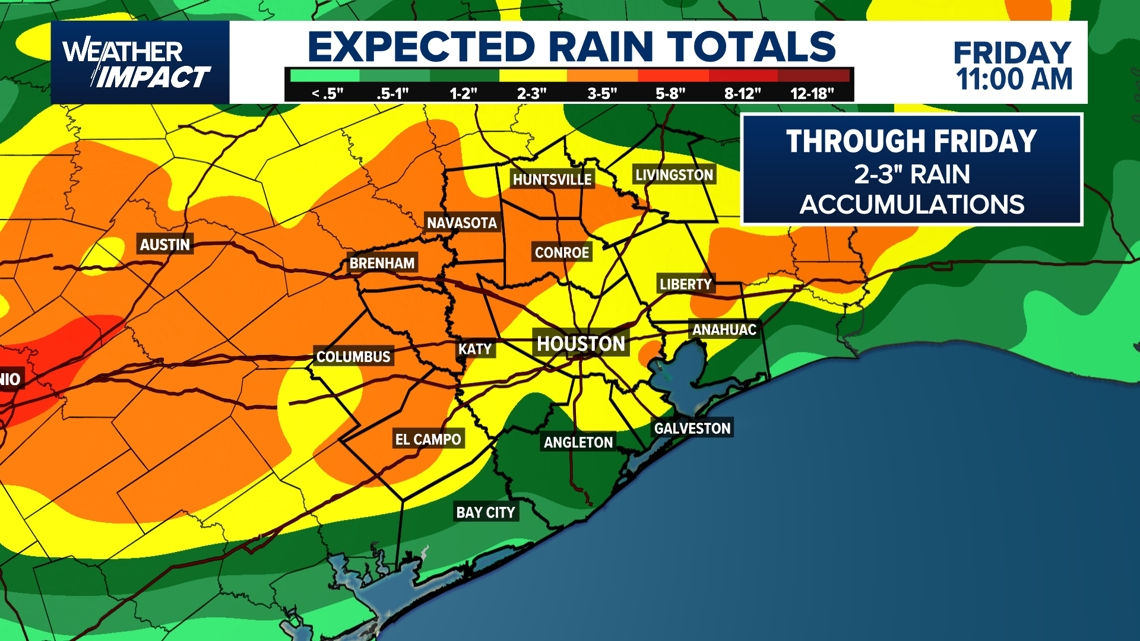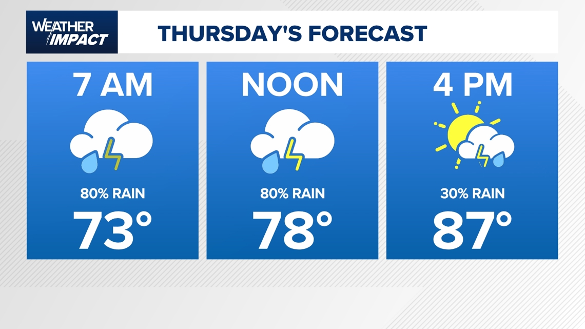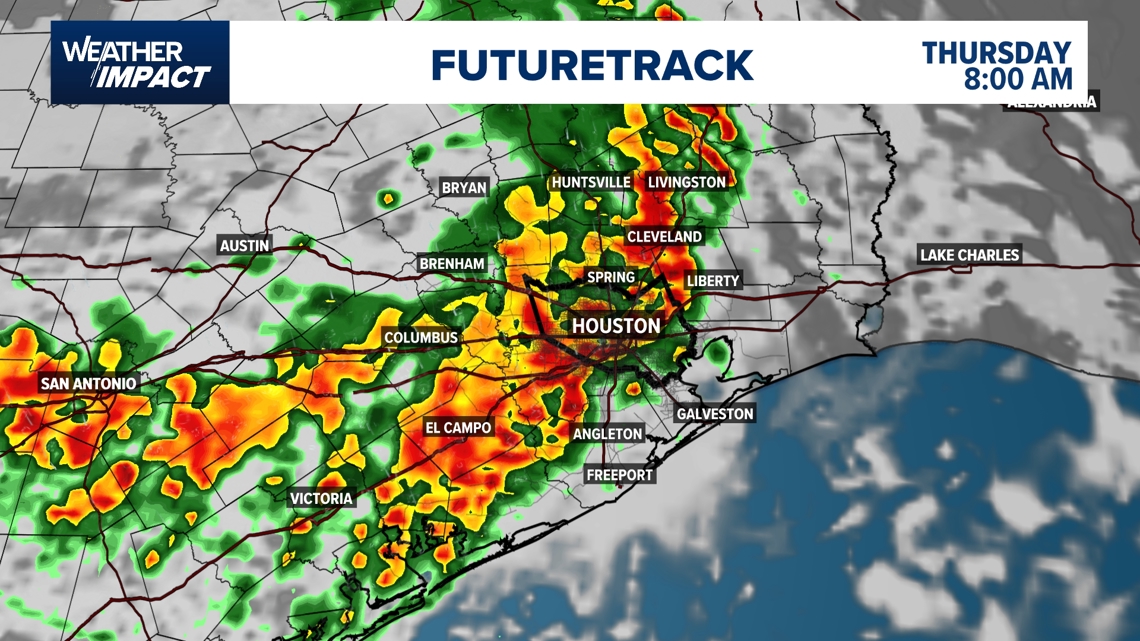 HOUSTON — Thursday will convey one other day with widespread showers and thunderstorms. Rain probabilities ramp up shortly by the early morning hours by 12 p.m. We might see lingering showers by the afternoon.
