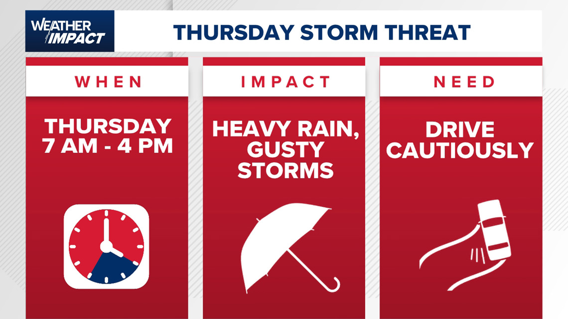 Extreme storm danger Thursday: Gusty winds, heavy rain, ponding on roadways