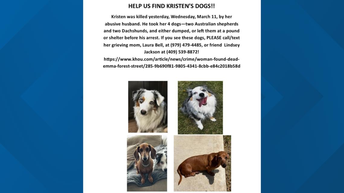 Based on relations, simply hours earlier than the alleged homicide, Probability stole Kristen’s 4 beloved canine and deserted them on the aspect of the Katy Freeway.